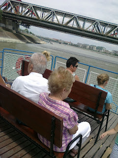 A beszállás mondjuk tényleg vicces volt, konkrétan keresztül kellett vonulnunk egy másik hajón. Erről nincs fotóm, de nem volt sem nehéz, sem veszélyes. Mozgáskorlátozottak, illetve gyerekek és kutyák is simán megcsinálták, és a többi megállónál nem is láttam ilyesmit, pedig konkrétan több, mint fél órát töltöttem a fedélzeten: a Jászai Mari térig utaztam. Többnyire a hajó tetején, arccal menetiránynak. :))